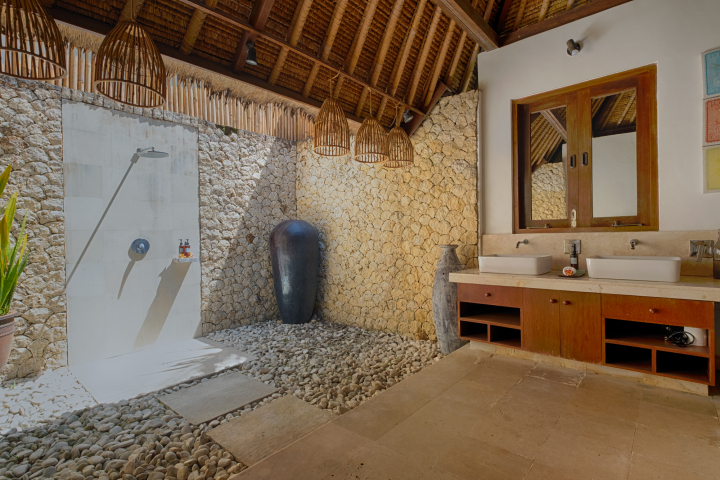 The villa, set in lush tropical gardens, sleeps 8 people in two master bedrooms and two twin bedrooms, all with ensuite indoor, outdoor tropical bathrooms and verandahs.